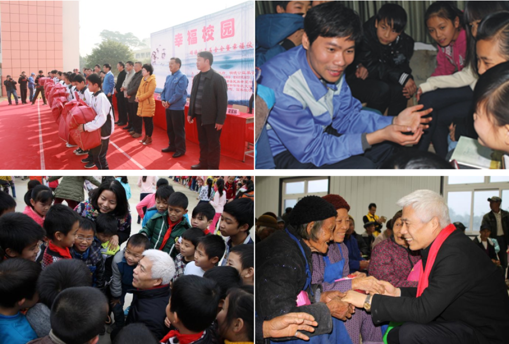 2013年底,应广西大新县政府邀请,基金会开始到位于中越边陲的民族希望中学进行幸福校园建设。学校是县里最偏僻落后的一所中学,学生大多是留守儿童。基金会每年都会派志愿者到学校,为师生们进行师德和生德培训,学习中华孝道,引导孩子们开展“环保爱地球”活动、关注社会弱势群体,开展“敬老院关怀”活动。志愿者和同学们一起打扫校园的每一个角落,在整洁明亮的美好环境里,学生们不断接受正能量的熏陶。孝道教育使孩子们明白了父母、老师的恩德,懂得了孝亲尊师,感恩逐渐成为幸福校园的校风。面对父母外出打工的现实,孩子们学会了承担,将抱怨转化为理解、感恩、前行的动力。到2017年该校的升学率从全县最差变成了全县。覃校长的妻子这样描述校长和学校的变化:“自他从苏州回来,就戒烟改脾气,性格都改变了;好几对老师夫妇家庭关系更和谐了,夫妻都争当班主任,争当留守儿童的另一对爸妈;从希望中学走出的都是懂得体谅父母的好孩子,到高中仍备受好评的好学生”。