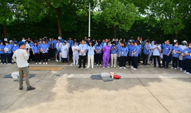 在老师专业的指导下,家人们认真学习心肺复苏急救法。对于成人患者而言,一旦没有应答反应,并且没有呼吸或者不能够正常呼吸时,便应该立即对其进行胸外按压操作。按压过程当中,施救者的手掌不应该离开患者的胸壁,同时要让患者的胸廓有充分的回弹,并尽可能的减少按压的中断次数和时间。