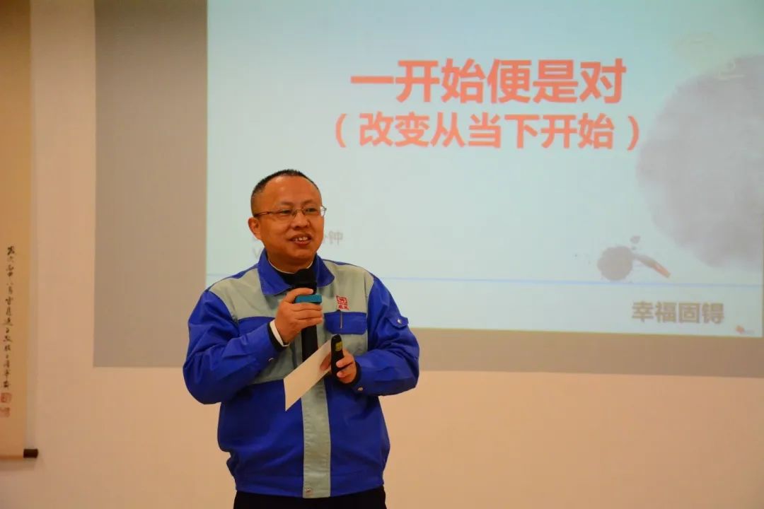 滕总作为本次培育营的营长,他用亲身经历告诉我们:“坚持,会给大家带来意想不到的能量和回报。改变从当下开始,要永远多走一步。”滕总从一名技术员到公司总经理,有着丰富的教学和管理经验。他用奥格·曼狄诺的名著《羊皮卷之二》来启发学员们:并不是所有的人都能一帆风顺的,用感恩的心面对生活,面对生活中的人、事、物。感受世间的美好,用付出的爱净化自己的灵魂。