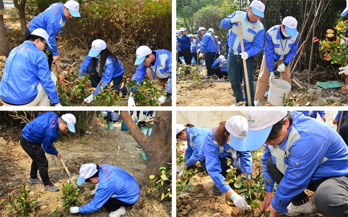 3月12日中午,由各支部组织的种植绿化活动在表面科技厂联合开展,今天阳光明媚,春意盎然,我们出发啦!