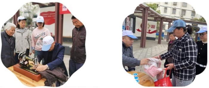 来的大部分是爷爷奶奶,他们拿着外套、被套、包包等,请志愿者帮忙修补。志愿者熟练地操作缝纫机,扦裤脚、补破洞、修拉链,用最简单的工具,为居民提供最贴心的服务。拿到缝补好的衣服,李婆婆称赞道:“你们的手艺真棒,衣物经过你们的‘修补’又能重新用了!”